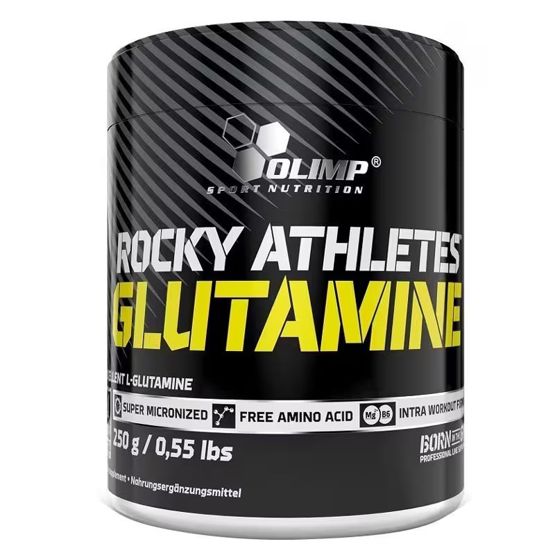 Mikronize edilmiş toz formda glutamin amino asidi içeren bir sporcu gıdasıdır. Olimp Rocky Athletes Glutamin, glutamin dışında B6 vitamini ilaveli bir içeriğe sahiptir.